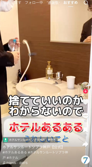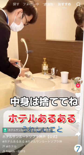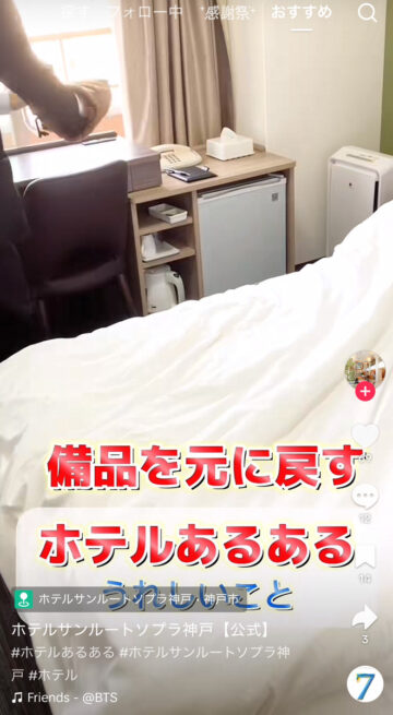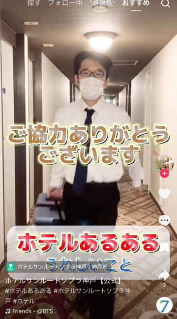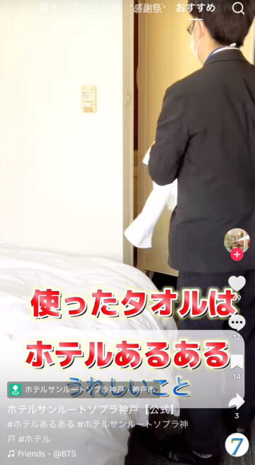 チェックアウト時にやってほしいことについて、ホテルサンルートソプラ神戸の公式TikTokアカウントで紹介しています。