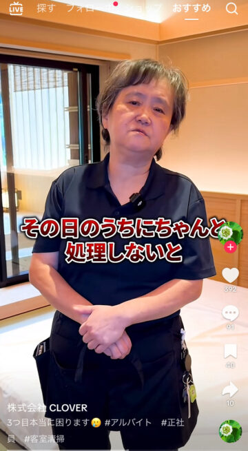 「洗うのどんだけ大変だと思ってるんだよ」 ホテルの清掃スタッフが怒る“理由”に「分かります」「汚くする客軽蔑します」 2025.12.31 著者 : オトナンサー編集部 キーワード : SNS • ホテル • 暮らし • ライフハック コメント (Twitter) Facebook B!Bookmark 【動画】「洗うの大変」 宿泊施設の清掃スタッフが怒る“理由”がコレです! @cloverkyoto 3つ目本当に困ります🥲 #アルバイト #正社員 #客室清掃 ♬ オリジナル楽曲 – 株式会社 CLOVER CLOVERの公式TikTokアカウントより 記事ページに戻る 【要注意】「洗うの大変なんだよ!」 ホテルの清掃スタッフがブチ切れた“理由”がコレです!(動画あり) 画像ギャラリー