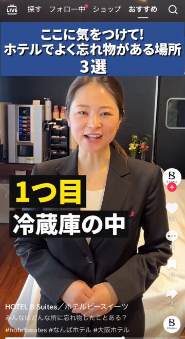 公式TikTokアカウントは「ここに気をつけて! ホテルでよく忘れ物がある場所3選」というタイトルの動画を公開。この動画では、スタッフが「ホテルマンは『またここに忘れ物か』と思うことがよくあります!」と説明した上で、客室で忘れ物がよく見つかる場所として「冷蔵庫の中」「洗面所、バスルーム」「ベッド周辺」の3つを紹介しています。洗面所やバスルームについては、「適当に置いたバスタオルの下は特に注意!」と呼び掛けています。