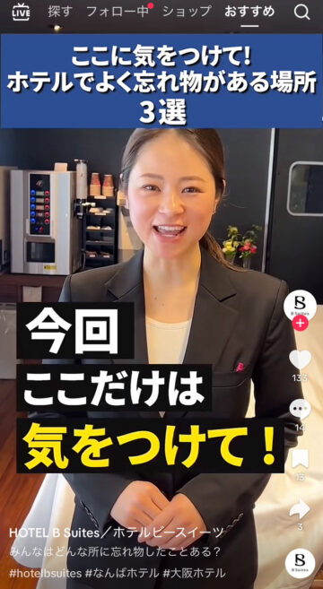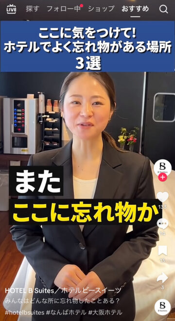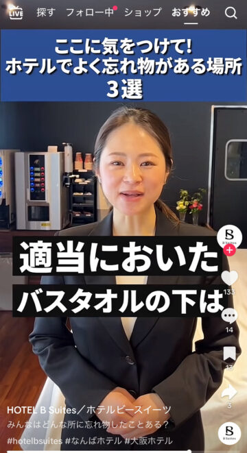 年末年始に旅行でホテルに泊まった際に忘れ物をしてしまった人もいると思います。ホテルの客室で忘れ物がよく見つかる場所について、ホテルビースイーツ(大阪市中央区)が公式TikTokアカウントで紹介しています。