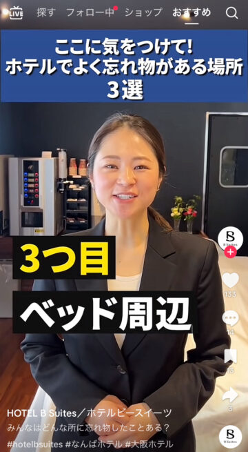 ホテルの客室で忘れ物がよく見つかる場所について、ホテルビースイーツが公式TikTokアカウントで紹介しています。