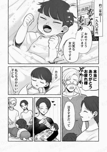 1990年代、当時はまだ新生児の聴覚検査をする病院がほぼありませんでした。娘が保育園に入ってから耳が聞こえていないことが分かり、両親は大きな戸惑いと不安を抱えます。そして、ろう学校を探す中で手話に出会い…という内容で、読者からは「読んでよかった」「手話は大切な言語だと思う」「親が手話を選択できるようになるまでって葛藤するよね」などの声が上がっています。