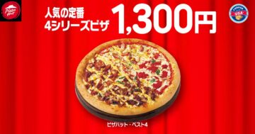 1300円のピザは、「ピザハット・ベスト4」Mサイズが対象。通常価格は3190円で、1890円お得になります。