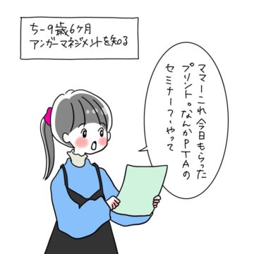 PTAが開催する「アンガーマネジメントセミナー」のプリントを持ち帰ってきた娘。「アンガーマネジメントは、怒る気持ちをコントロールすること」と説明する母に、娘は…という内容で、読者からは「分かる!」「目からウロコです」「今日からやってみます」などの声が上がっています。