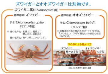 ズワイガニとオオズワイガニの違いについて、農林水産省がXの公式アカウントで紹介しています。