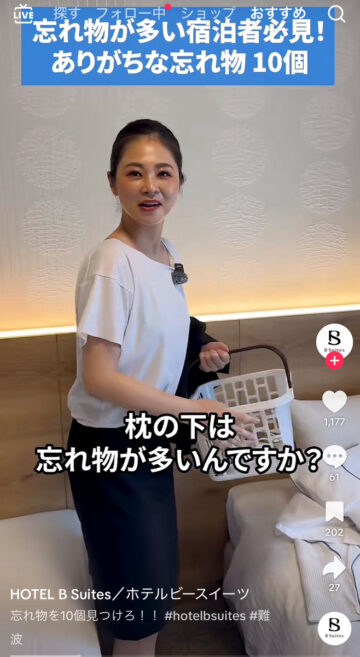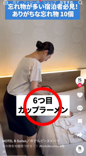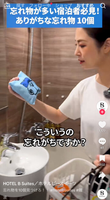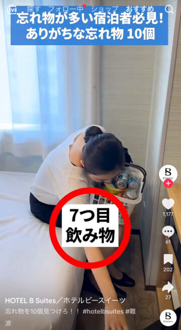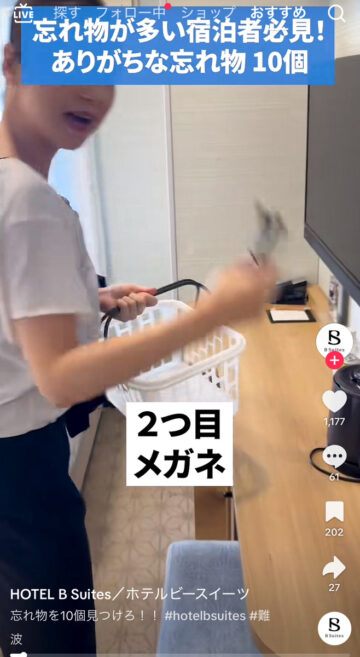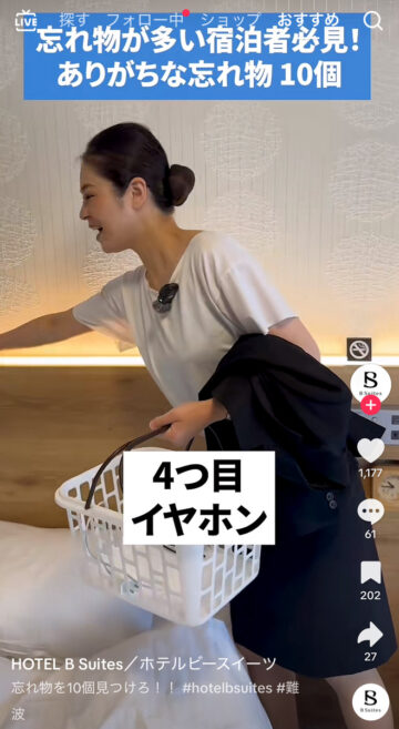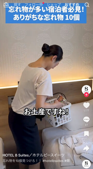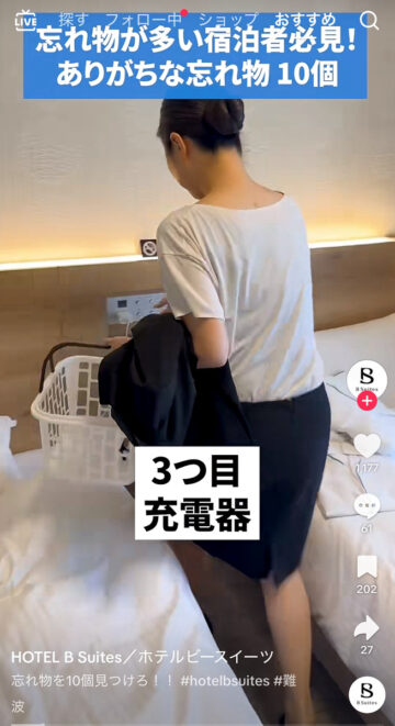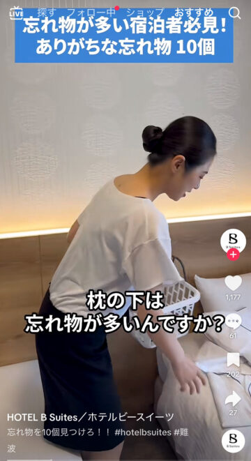 ホテルの客室内でよく見つかる忘れ物について、ホテルビースイーツが公式TikTokアカウントで紹介しています。