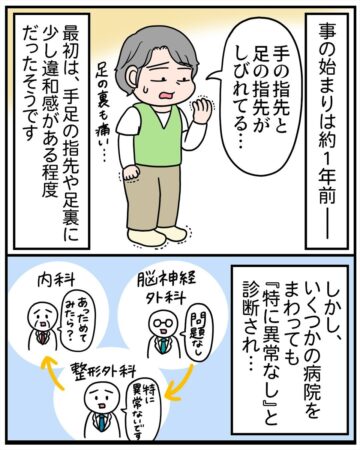 【漫画】「このままどうなるの?」手足のしびれで日に日に動けなくなる母… 「異常なし」から病名が判明するまで