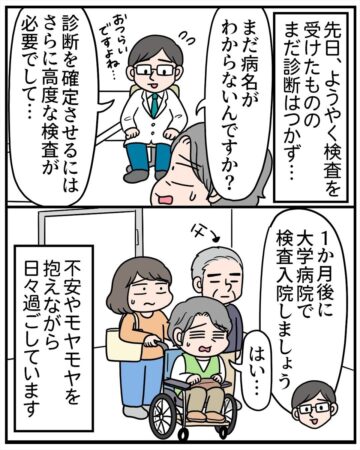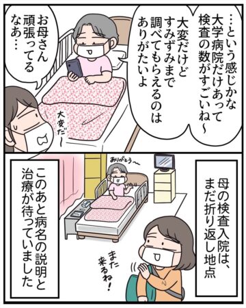 検査入院したときも、原因を探るためにたくさんの検査を行っていたのですが、母本人はもちろん、見守る側としても、何もできないもどかしさを感じる時間でした」