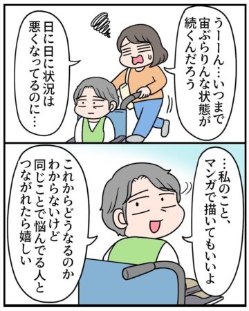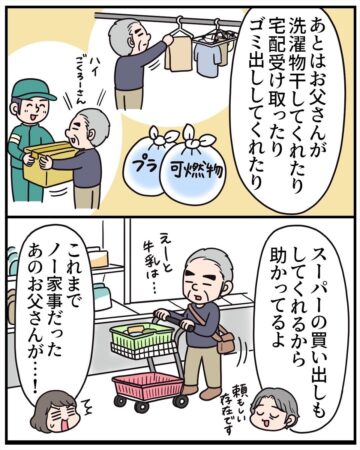 また一方で、私が実家へ行く時間が増え、普段のエッセー漫画が描けない状況になっていることを察して、『ネタにしていいよ』という意味も込めて、『描いていいよ』と言ってくれたのかもしれません。