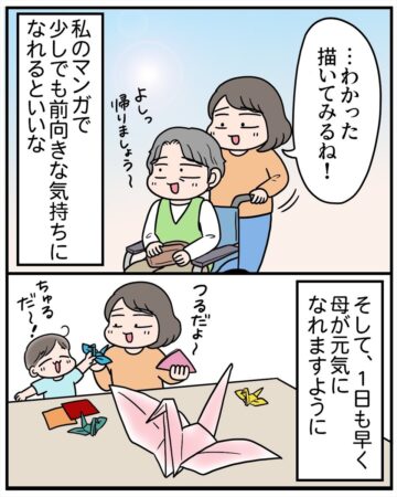 一方で、『無理せず描き続けてください』『描けるときで大丈夫ですよ』といった、私や母を気遣ってくださる言葉も多く、発信する側と読む側が、どこかで支え合っているような感覚がありました」