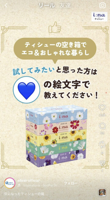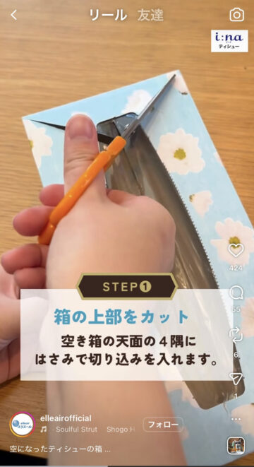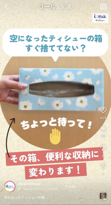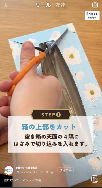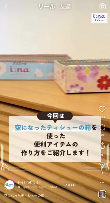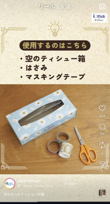 空になったティッシュ箱の便利な再利用法について、ティッシュペーパーやトイレットペーパーなどを製造する大王製紙が、「エリエール」の公式インスタグラムアカウントで紹介しています。