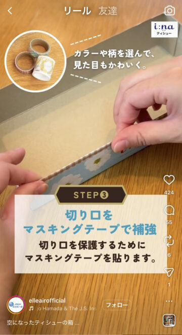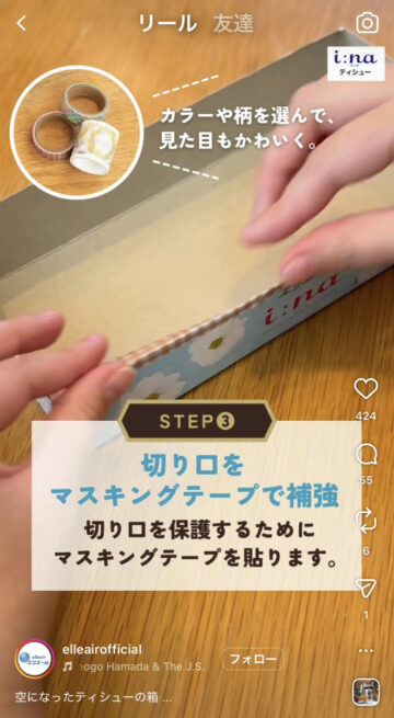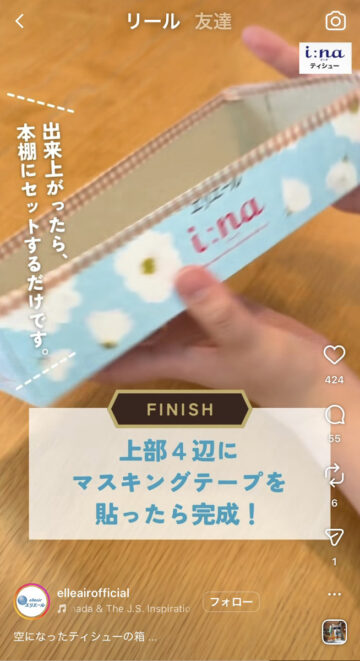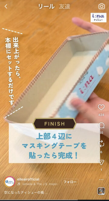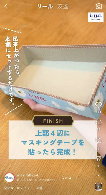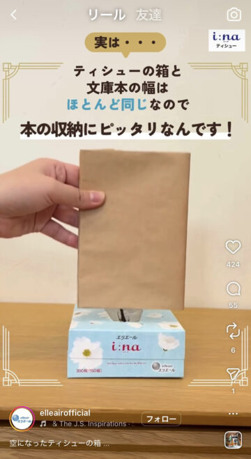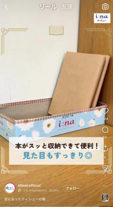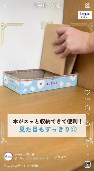 公式インスタグラムは「ティッシュの箱と文庫本の幅はほとんど同じなので本の収納にぴったり!」と説明し、本の収納箱を作るのを勧めています。