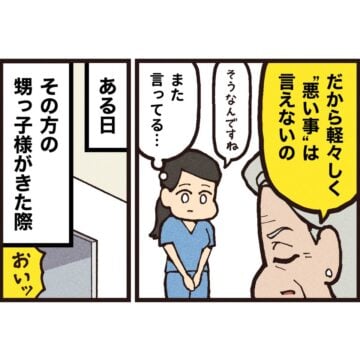 「私は霊感があるから、軽々しく悪いことは言えない」と、担当していた高齢女性から言われた介護士。そのときは「そうなんですね」と返していたのですが、ある日高齢女性が言った言葉が…という内容で、読者からは「私も言霊って本当にある気がしています」「でも逆にポジティブな言葉を言われたらマジでうれしい!」などの声が上がっています。