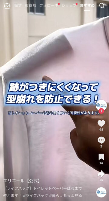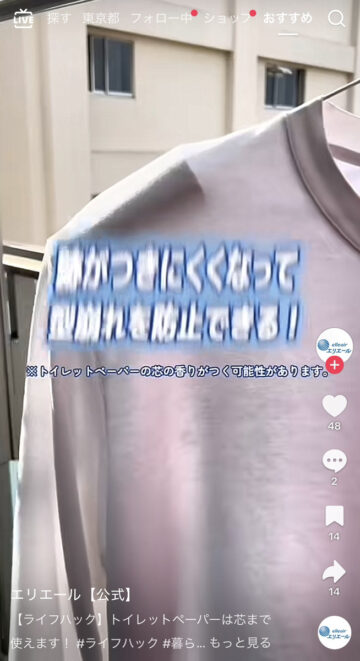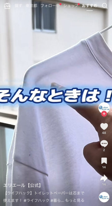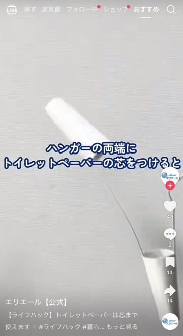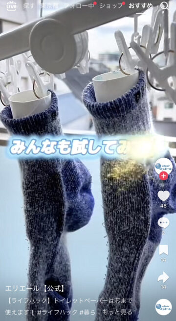 公式アカウントは「【ライフハック】トイレットペーパーは芯まで使えます!」とコメントした上で動画を公開。