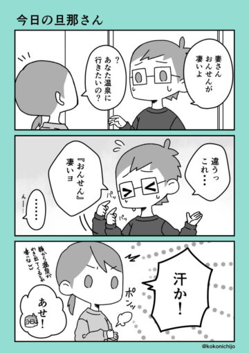 【漫画】突然、顔を指して「おんせんがすごい」? 中国人夫のちょっとズレた日本語ミスに「一生懸命で愛おしい」