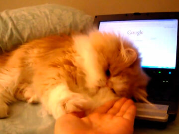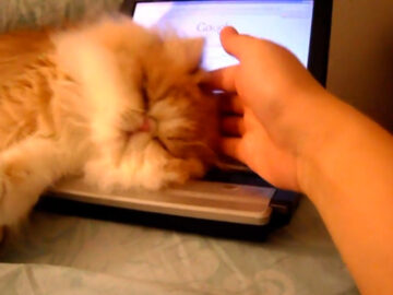 注目を集めたのは「Kitty says “Don’t touch MY computer”」という動画。ノートパソコンの上を陣取るふわふわの猫の姿からスタートします。まるで「ここは僕のテリトリーだからニャ」という声が聞こえてきそうなくらい。いったい何が、彼をそうさせているのでしょう。
