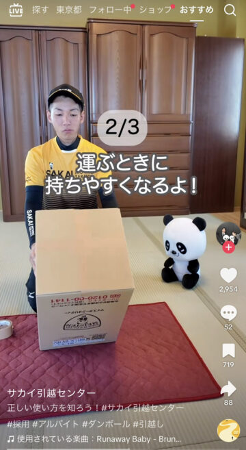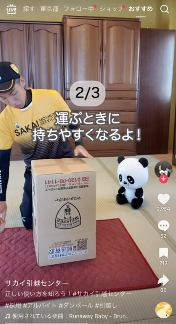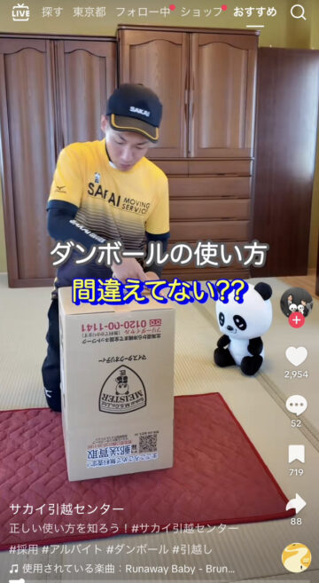 @saiyo_panda 正しい使い方を知ろう!#サカイ引越センター #採用 #アルバイト #ダンボール #引越し ♬ オリジナル楽曲 – サカイ引越センター
