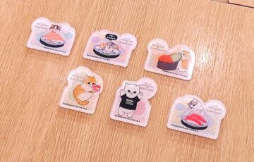 また、店舗の各テーブルに備え付けられた「皿回収ポケット」に、食べ終えた皿5枚を入れるとゲームに挑戦できる「ビッくらポン!」では、当たりが出ると、「ラバーチャーム」(全6種)、「アクリルステッカー」(全6種)、「缶バッジ」(全10種)がもらえます。オリジナルアニメ「待望の新しいサメスーツ」「ワクワクふくびき」「天空のくら寿司」も楽しめます。