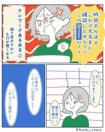 テレワークをしている人がやりがちなこと。独り言が多くなったり、カメラに映らないところは適当だったり、時には…という内容で、読者からは「私も同じです!」「めちゃくちゃ共感しました」などの声が上がっています。