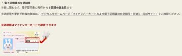 有効期限の2カ月から3カ月前をめどに、地方公共団体情報システム機構(J-LIS)から、有効期限をお知らせする『有効期限通知書』が同封された封筒がご自宅に送付されますので、忘れずにお早めの更新手続きをお願いします。更新方法や有効期限通知書の詳細は、マイナンバーカード総合サイト『更新手続きについて』またはデジタル庁ホームページ『マイナンバーカードおよび電子証明書の有効期限・更新』をご覧ください」