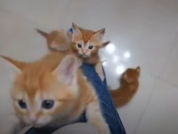 YouTubeで公開されている動画「Kitten climb the leg」が、視聴者の間で「この子猫たちに登られるなら本望です!」と話題に。どんな動画なのでしょうか。
