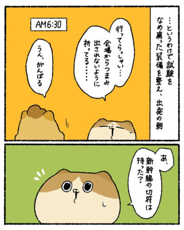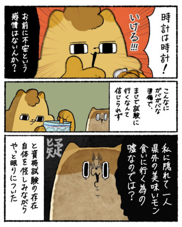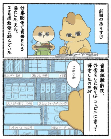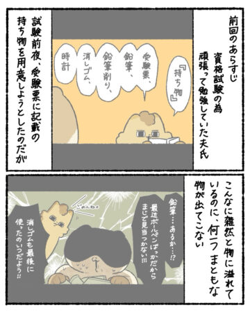 仕事の関係で約2カ月間、資格試験の勉強を続けていた夫。いよいよ明日に試験を控えた日の夜、試験に必要な物を確認していくと…という内容で、読者からは「旦那さんの心の余裕、うらやましい」「試験の結果、気になる(笑)」などの声が上がっています。