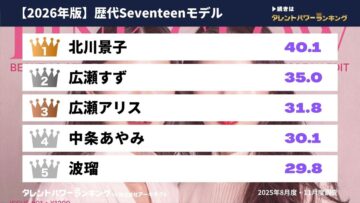 「タレントパワーランキング supported by DmMiX」が、女性ファッション誌「Seventeen」の専属モデルを務めたことがあるタレントのランキングを発表。広瀬アリスさんと広瀬すずさんを上回った1位は?