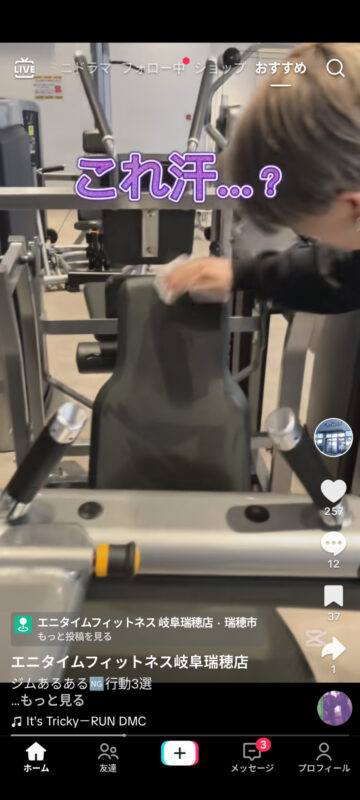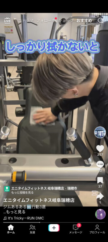 24時間ジムでやりがちなNG行為について、エニタイムフィットネス岐阜瑞穂店の公式TikTokアカウントが動画で紹介しています。
