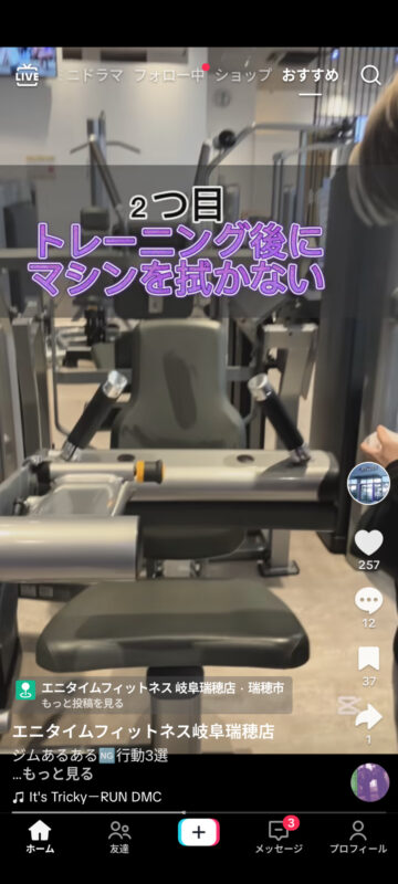 公式アカウントは「【ジムあるある】24時間ジムでよく見かけるNG行動3選」というタイトルの動画を公開。