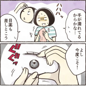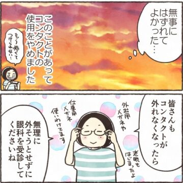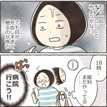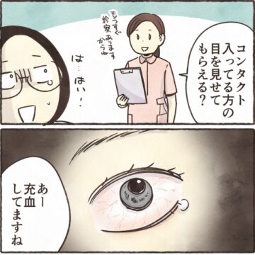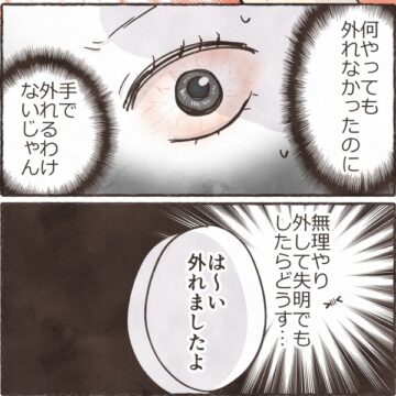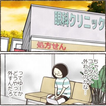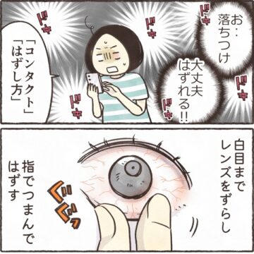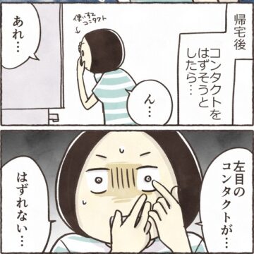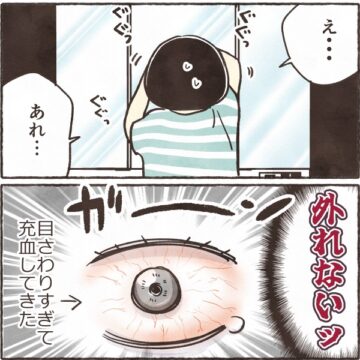 【漫画】「どうやっても取れない!」コンタクトが目に張り付きパニック… 眼科へ駆け込む事態に「私もなった」
