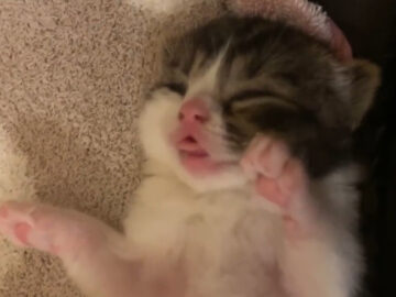 注目を集めたのは「子猫の大冒険でハプニング発生!!」という動画で、子猫ポコちびの寝顔から始まります。舌を出したまま、ピクピクと手足を動かしながら寝るポコちび。一体どんな夢を見ているんでしょうか。