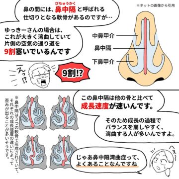やまみーさん「『自分も同じ手術しました』『共感しかない!』というコメントがたくさん届きました。コメントの数を見ても、『本当に鼻中隔湾曲症ってよくあるものなんだな』と、実感しましたね。旦那もそうでしたが、生まれつきのものだと『鼻呼吸できない=当たり前』と思って、気付かずに過ごす方が多いそうです。もしもこの話を読んでいる方の中に、『普段から鼻呼吸ができない』と感じている方がいらしたら、ぜひ一度耳鼻科に相談してみてくださいね」