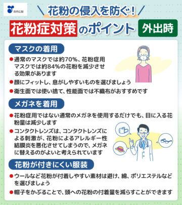 花粉の体内への侵入を軽減する方法について、次のように紹介しています。