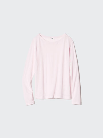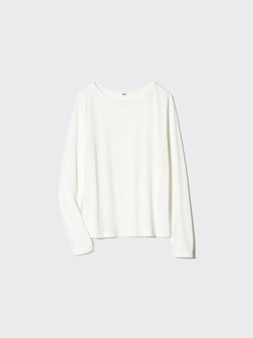 4つ目は、「バターイエロー(クリーム)×オフホワイト」。ほどよい透け感で、重ねても重くならない「シアーT」の、「40 CREAM」と「01 OFF WHITE」をレイヤード。トレンドのバターイエローで、春らしく軽やかなコーデが完成します。