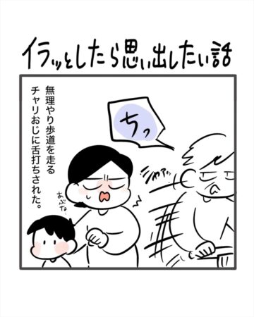 歩道を無理やり自転車で走るおじさん。「あぶない!」とよけたら、舌打ちをされました。おじさんの態度にイラッとした母を見て、6歳の息子は…という内容で、読者からは「息子さん、賢い!」「人生何周目なの?」「私もムカついたらまねします」などの声が上がっています。