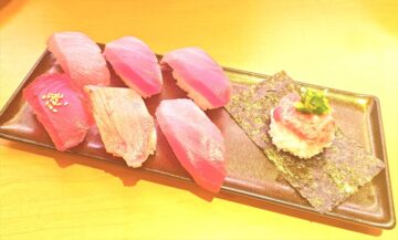 また、まぐろの赤身と煮切りしょうゆ漬けにした赤身が楽しめる「厳選まぐろ赤身食べ比べ」(140円~)をはじめ、「びん長まぐろ食べ比べ」(200円~)、「厳選まぐろ赤身ととろたく手巻」(360円~)、「春の山海の幸 天ぷら盛り(えび天)」(430円~)がレギュラー販売されます。