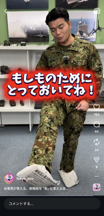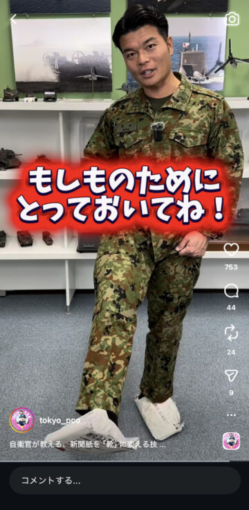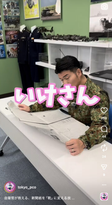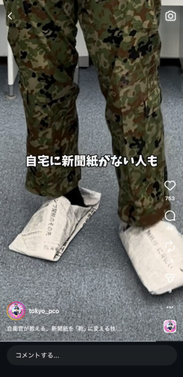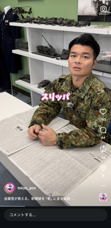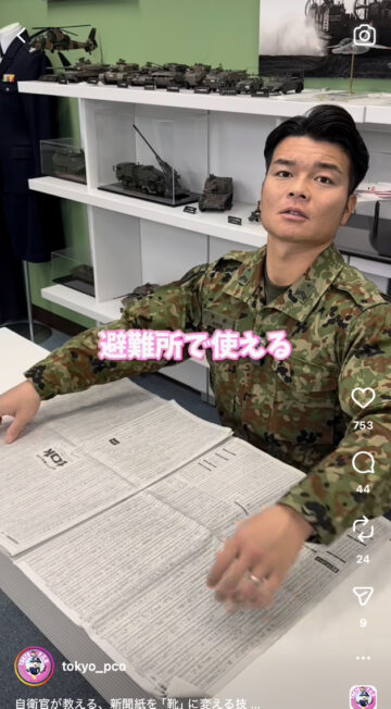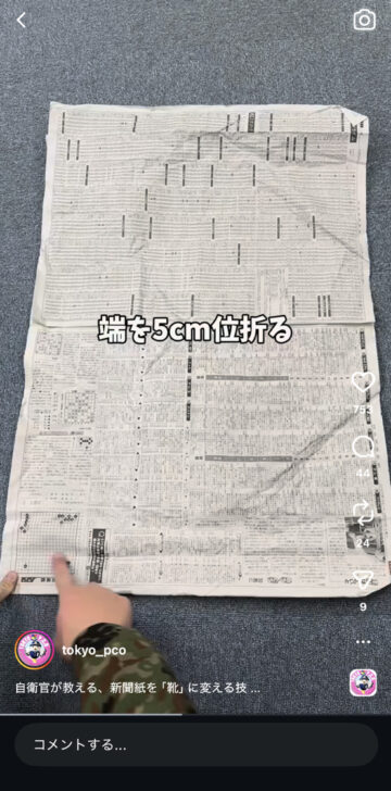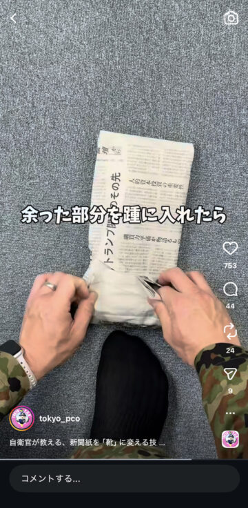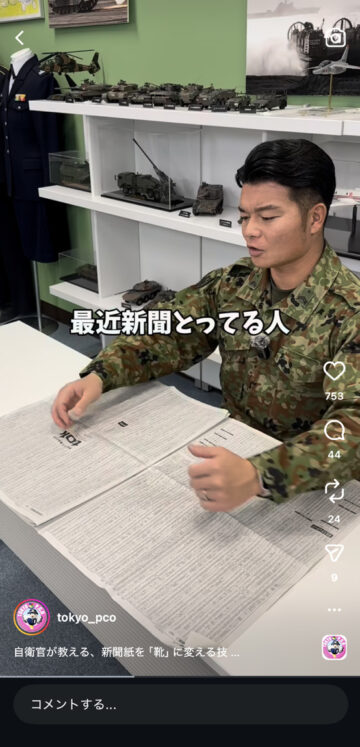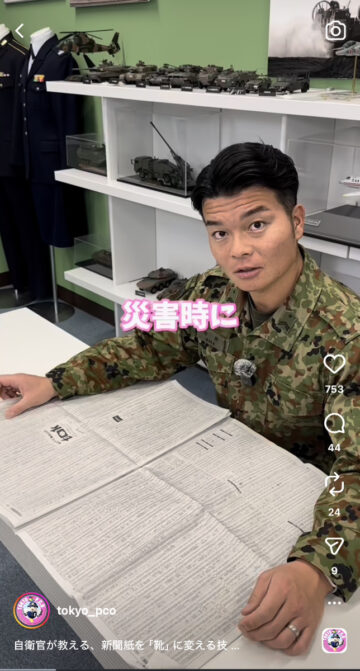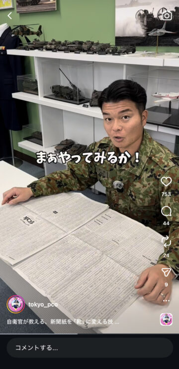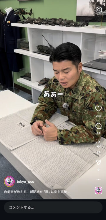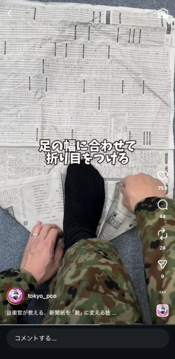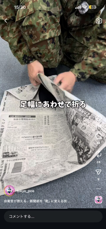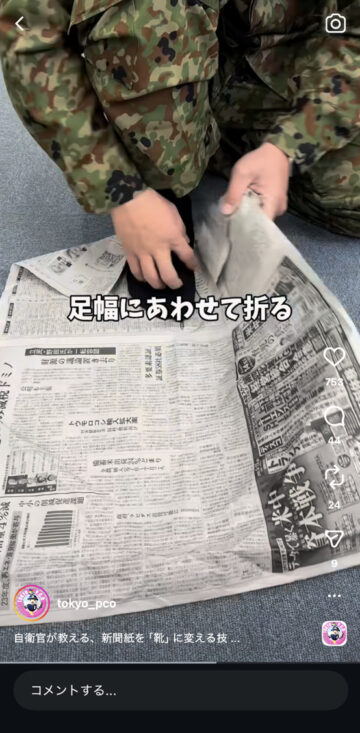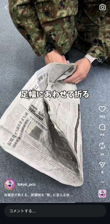 そんな中、新聞紙を使って靴を作る方法について、自衛隊東京地方協力本部(以下、自衛隊)が3月11日、インスタグラムの公式アカウントで公開しました。