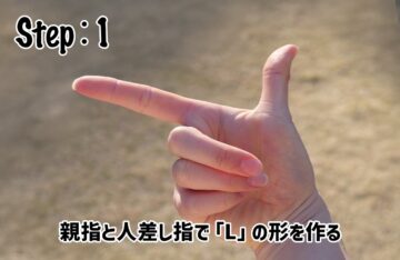 (1)親指と人さし指で「L」の形を作る。