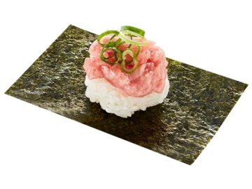また、「プレミアムねぎとろ包み~みなみ鮪(マグロ)使用~」と「とろサーモン いくらのせ」を一貫110円~で販売。