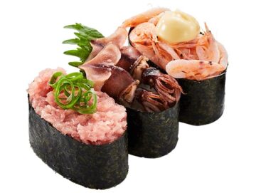 さらに、「とろっとまぐろ大葉包み(とろろ)」一貫(140円~)、「豚トロ塩だれ炙(あぶ)り」一貫(130円~)、「とろっと豚トロ塩だれ炙り(とろろ)」一貫(130円~)、「うなとろっ天ちらし風にぎり(とろろ)」一貫(190円~)、「3種の春ネタ軍艦三昧(プレミアムねぎとろ軍艦~みなみ鮪使用~・ほたるいか軍艦・桜えびマヨ軍艦)」三貫(320円~)がラインアップ。