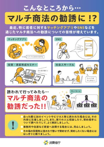 春は進学や就職などで生活が変わる人は多いと思います。マッチングアプリやSNSなどで知り合った人からビジネスや投資セミナーなどに誘われたときはマルチ商法に注意するよう、消費者庁がXの公式アカウントで呼び掛けています。