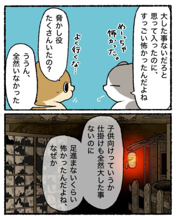 ゆうさん「『とても怖かった』そうです。お化け役の人がいるわけでもなく、ものすごい仕掛けがあるわけでもなく、ただおどろおどろしい展示物が置いてあるだけ。にもかかわらず、暗い店内を歩くことが『なぜかこれまでにないほど怖かった』と言っていました」