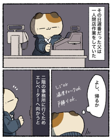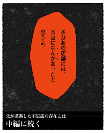 ゆうさん「こんなことがあっても、次の日もいつも通りに出勤して、いつも通りに働いて、いつも通りに帰宅したそうです。あいかわらず、従業員たちの間では『出る』といううわさはあったようですが、父ほどの体験をした人はいないのではないでしょうか…」