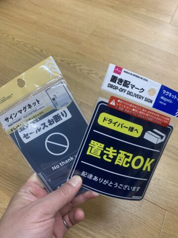 ここで有効なのが、置き配の意思表示です。100円ショップには、置き配サインプレートやマグネット式の表示用品があります。これを使えば、宅配時にドアを開ける回数そのものを減らすことができます。