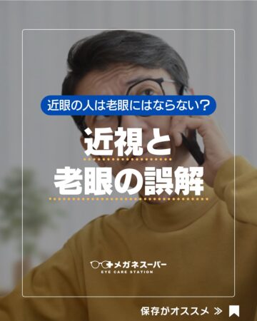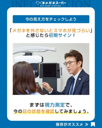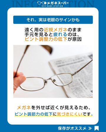 見逃しやすい老眼の初期サインについて、メガネスーパーの公式インスタグラムアカウントが紹介しています。
