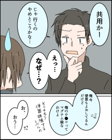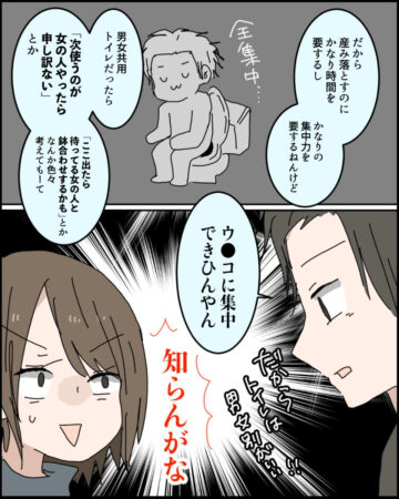 【漫画】「気まずい…」男女共用トイレを避ける彼の本音に共感続出! 彼女との“トイレ論争”が話題