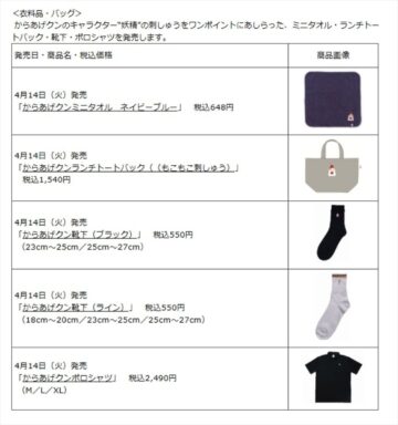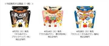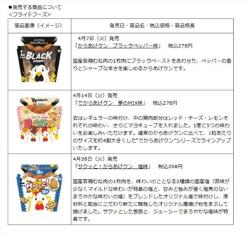 また、からあげクンの40周年を記念して、新フレーバー「からあげクン ブラックペッパー味」と「でからあげクン 夢のMIX味」(278円、以下、税込み)、「サクッと! からあげクン塩味」(税込298円)のほか、からあげクンのキャラクター「妖精」の刺しゅうをワンポイントにあしらった、ミニタオル・ランチトートバック・靴下・ポロシャツを4月7日から順次販売します。