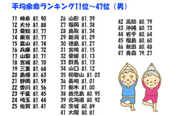 ちなみに、平均寿命ランキングで男女ともに最下位となったのは青森県(男性79.27年、女性86.33年)でした。健康診断の受診率の低さに加え、飲酒・喫煙率の高さ、塩分の取りすぎ、さらには運動不足といった複数の要因が重なっているようです。