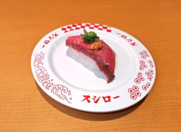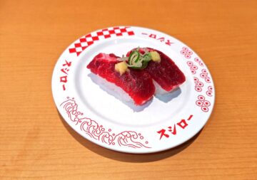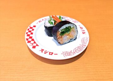 さらに、馬刺し、サバ、そでイカを食べ比べできる「うまかもん!九州3貫盛り」(360円~)、天然の連子タイ、一本釣りカツオ、きびなごが一度に楽しめる「わっぜ!九州3貫盛り」(280円~)、大分名物「ひゅうが丼」をイメージした「漬けまぐろのひゅうが丼風にぎり」(180円~)のほか、「馬刺しにぎり」(360円~)、「黒毛和牛ローストビーフ 山わさび」(280円~)、「やまやの明太子軍艦」(120円~)、「馬刺しねぎとろ包み」(120円~)、「レタス巻(えび天入り)」(180円~)がラインアップ。