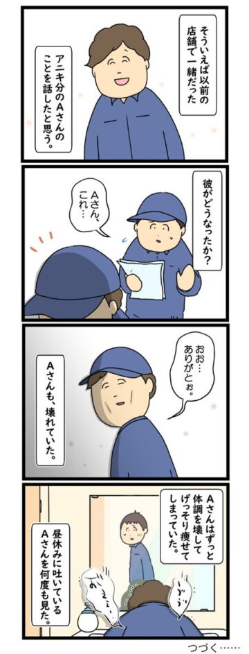リス山さん「自分を元気づけてくれた先輩でさえも、ストレスで壊れかけてしまっている場面は、作品でも一番絶望感が強い場面として描いたつもりです」
